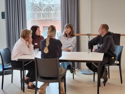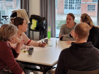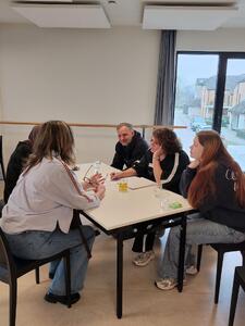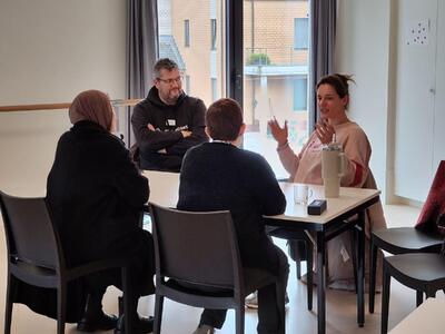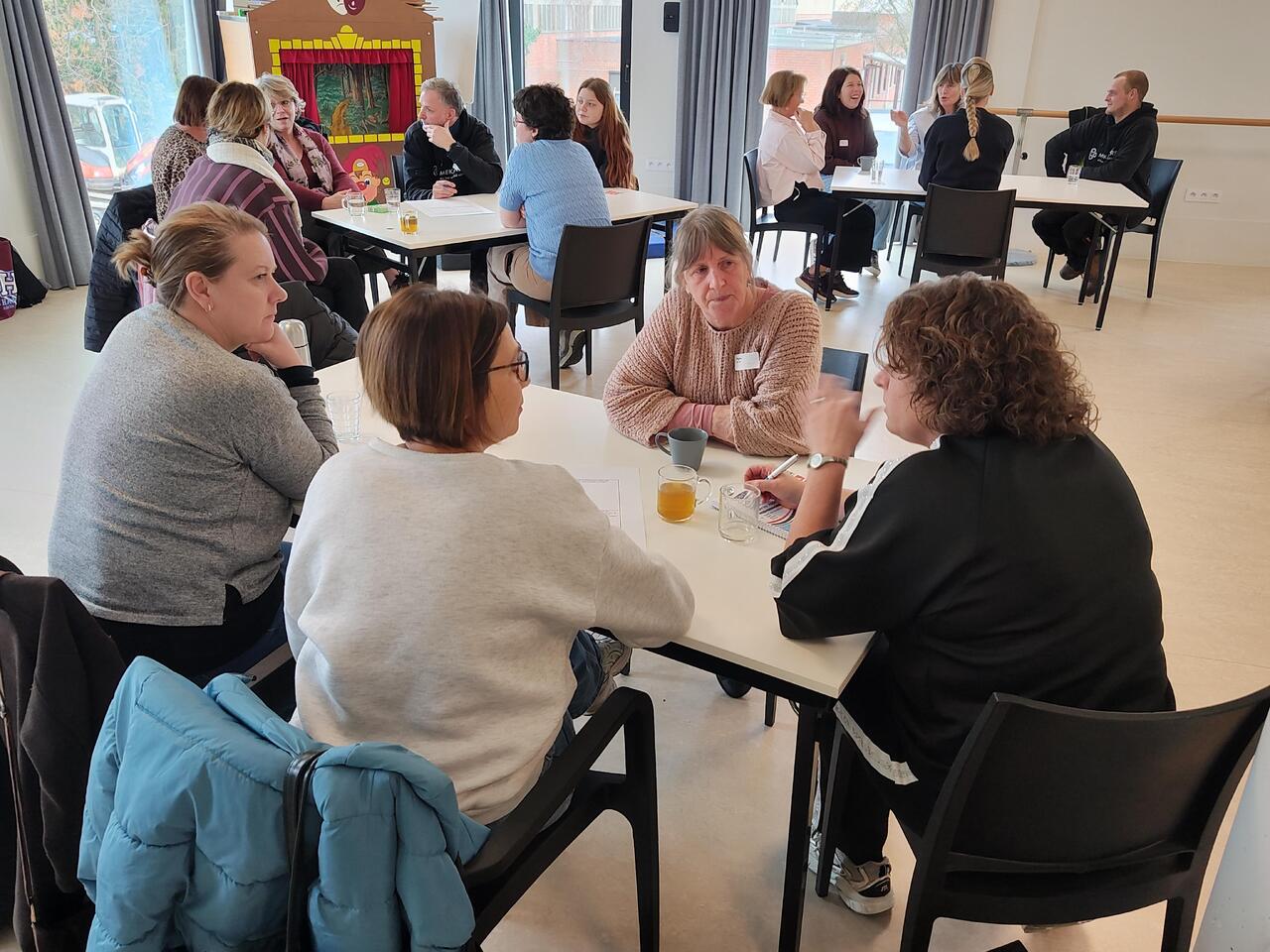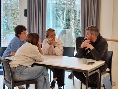 Personeelsdirecteur Betty brengt de logistieke medewerkers en technische dienst samen om te reflecteren over het psychosociaal welzijn op het werk. Ze denken samen na over hulpbronnen en hinderpalen. Ze plakken groene stickers op de items waarover ze tevreden zijn en rode stickers op de ‘moeten we het eens over hebben’-punten. Er worden heel wat goede en inspirerende voorbeelden gedeeld. Omdat alles ook nog beter kan, worden er ook heel wat verbetervoorstellen geformuleerd, die later verder besproken en uitgewerkt kunnen worden. Het is een constructieve voormiddag met een positieve ploeg.