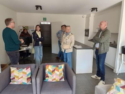 In Oud-Turnhout leidt teamcoach Filip de collega’s rond in het woonhuis Goriën en doet hij samen met gebouwenbeheerder (andere) Filip de plannen van het gloednieuwe Goriën uit de doeken. De werken starten in het najaar in Schoonbroek (Retie). Spannend!