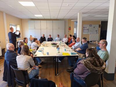 Als kers op de taart mag het Team Administratie haar toer afsluiten op de gloednieuwe bovenverdieping van De Rusthuif. Voor velen was dit vroeger hun werkplek maar nu is het een mooi crea-atelier voor de gasten van De Rusthuif, bereikbaar met een lift. Het is een heel blij weerzien met veel oud bekenden. Glenn leidt iedereen op professionele wijze rond alsof hij nooit anders gedaan heeft. Een gids en gastheer in hart en nieren! Stijn, Félien en Winni verwennen iedereen met een tasje koffie en lekkere zelfgebakken cake. Dennis is de fotograaf van dienst. Gie zorgt voor extra gezelligheid. En Carine blijft helemaal tot het einde om samen met teamcoach Sabine alles op te ruimen. Wat een team!