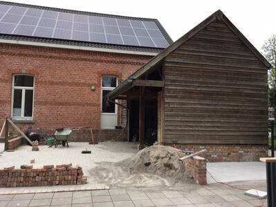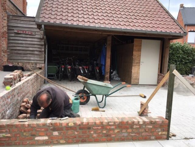 Met de nodige subsidies van het Pendelfonds en andere sponsors, met recuperatiemateriaal én met de mankracht en het vakmanschap van onze klusjesmannen zal binnenkort de nieuwe fietsenstalling staan blinken in de tuin van De Boomgaard.