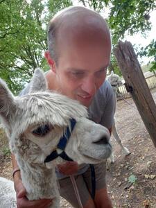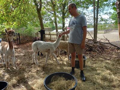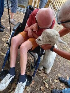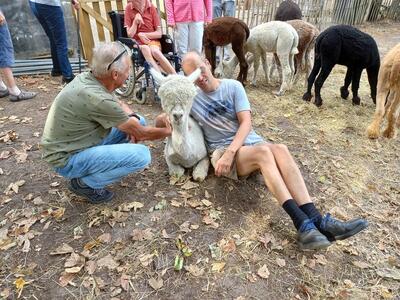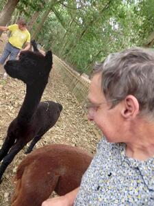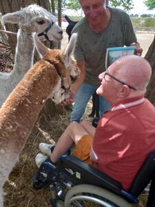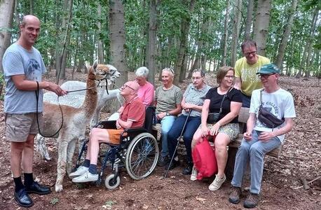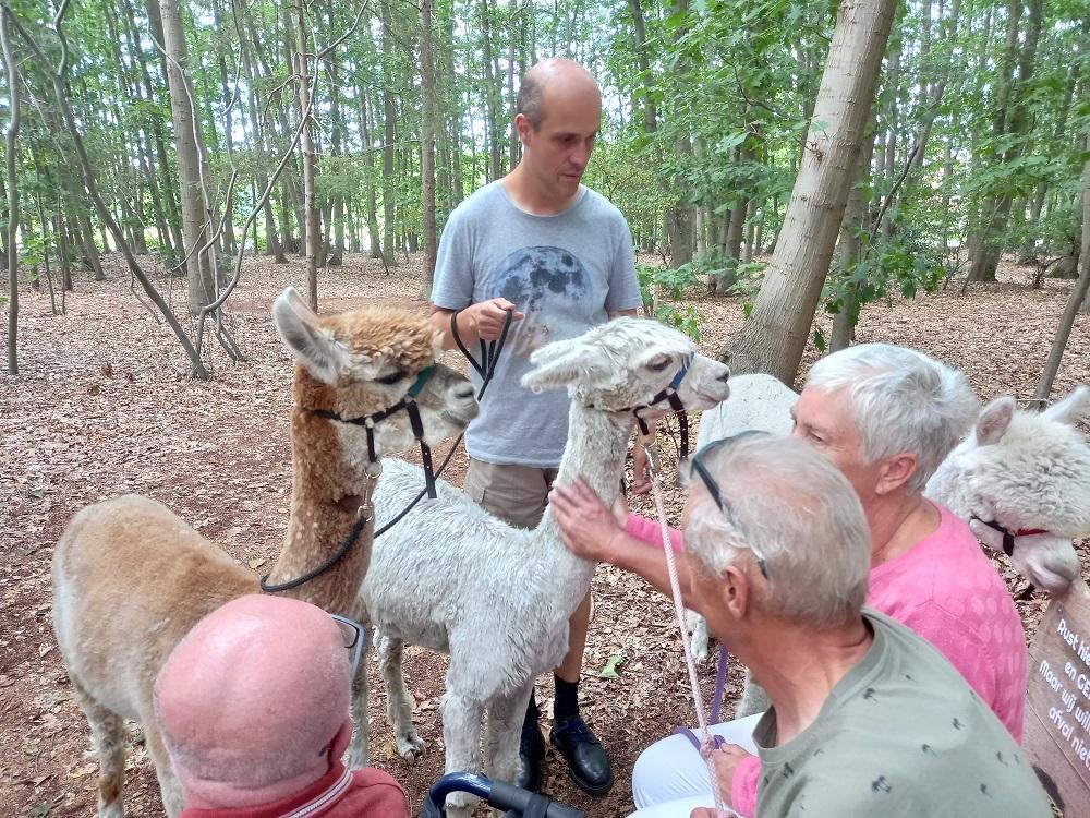 De bewoners van De Hei genieten van een wandeling op het tempo van de alpaca's van Epic Alpaca Farm in Hoogstraten.