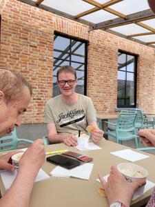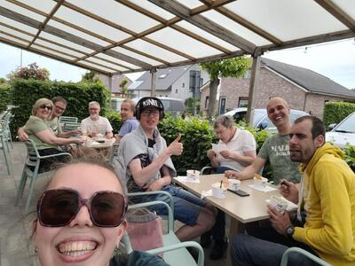 Ons dagje begon rustig met een lekker ontbijtje. Tegen de middag vertrokken we naar zorgboerderij Het Groeiveld. Daar werden we begroet door vrolijke hond Terra, die onder tafel ging liggen terwijl we onze picknick opsmulden. Hmmmmm, sandwiches!