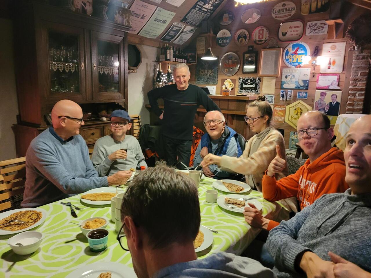 Ter ere van zijn verjaardag nodigt Stef iedereen uit voor pannenkoeken bij hem thuis. Wat een leuke verrassing! Het is supergezellig en kei lekker.
