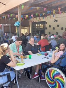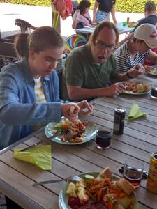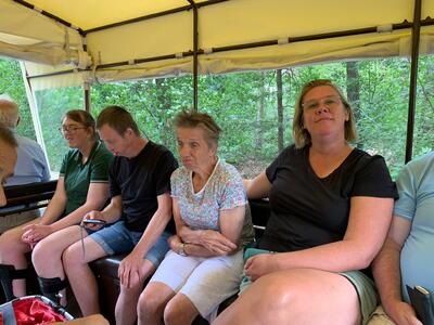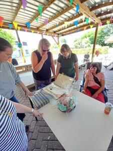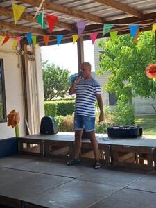 Een huifkartocht is altijd een schot in de roos. ’s Middags een BBQ met een lekker drankje en  als dessert rijstpap, gemaakt door vrijwilligster Maria. Mmm dat smaakt! Na de heerlijke lunch brengen een aantal cliënten een optreden op het podium, speciaal voor Els. Huisdichter Sandy leest tenslotte een zelf geschreven gedichtje voor.