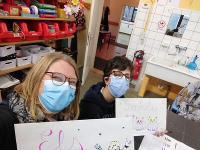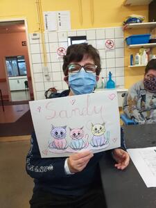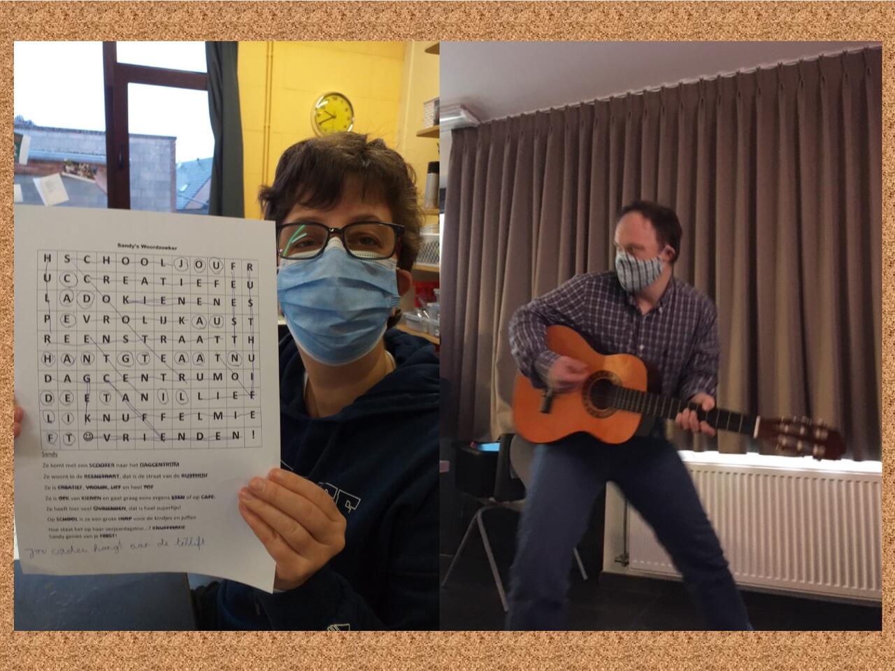Dit zorgde voor een leuke interactie omdat in dezelfde bubbel ook begeleidster Els gevierd werd voor haar 10-jarig jubileum in De Rusthuif. Els en Sandy maakten leuke opdrachtjes voor elkaar.