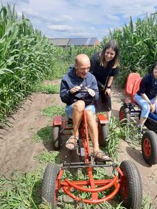 Maike, Marc en Viviane trotseren het maïsdoolhof in Arendonk bij ijssalon
