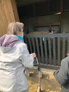 De bewoners van De Villa bezoeken de schaapjes van hun begeleidster Elien.