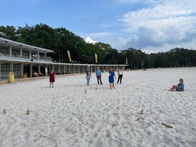 Op het parelwitte strand van het Zilvermeer in Mol krijgt het team van De Villa vorming rond teamrollen en kwaliteiten. Ze leren elkaar nóg beter kennen. Deze leerrijke, interessante en gezellige dag sluiten ze af met een spelletje Kubb op blote voeten in het warme zand.