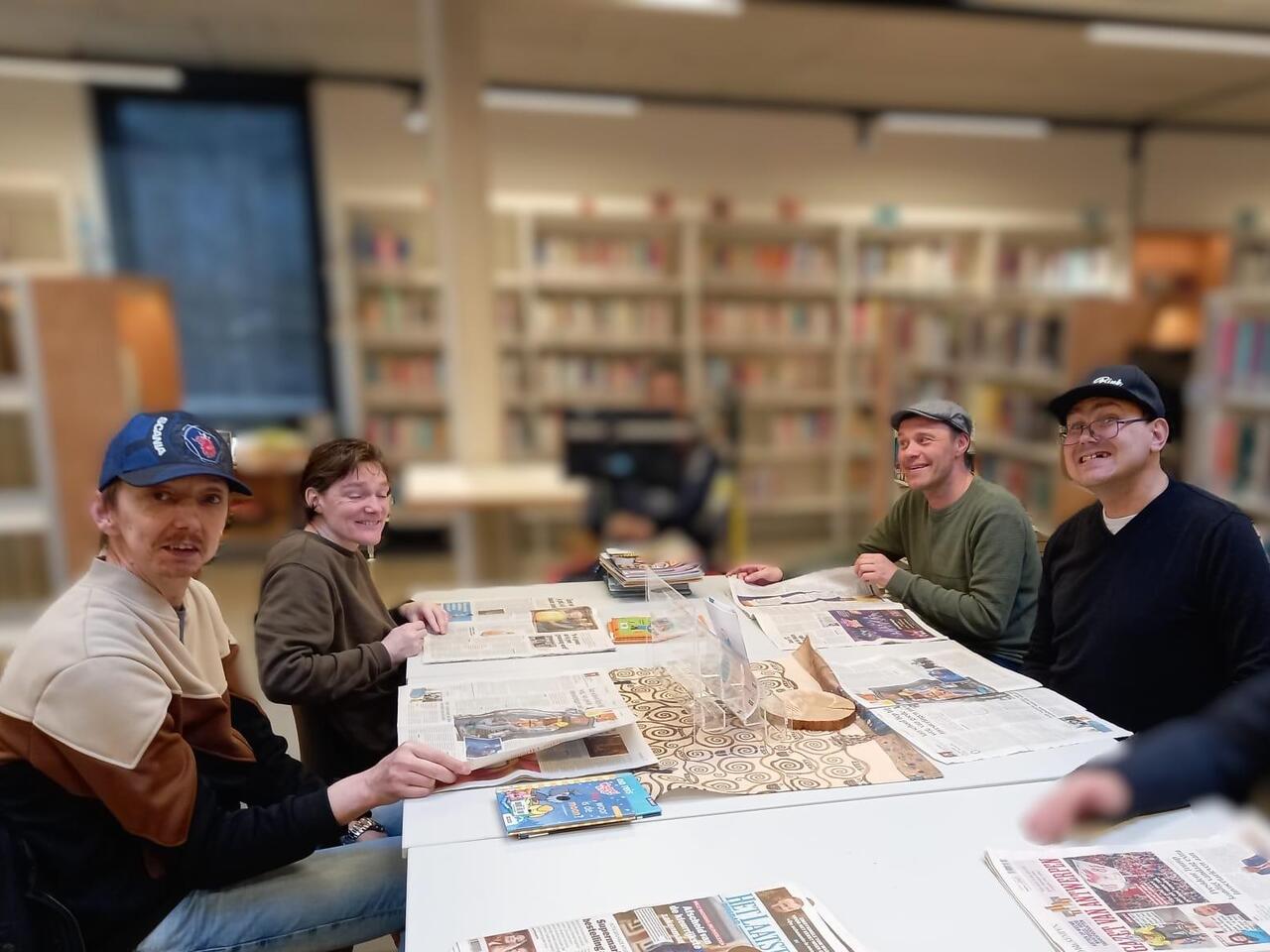 Het actuagroepje van MarkSaam leest de krant en bespreekt de actualiteit in de bib van Merksplas.