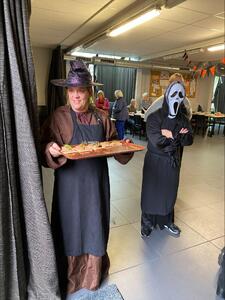 De cliënten van het AC maken een lekker griezelig menu voor hun klanten. De senioren van Arendonk genieten van bloedsoep met spinballetjes en slijkkoeken.