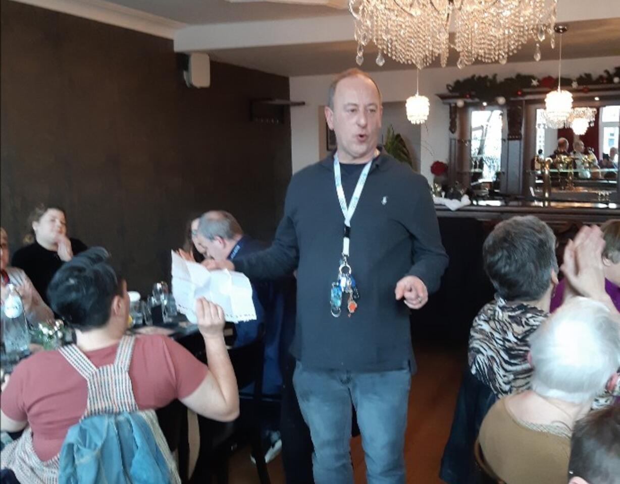 Cliënten en personeel van het AC sloten het jaar goed af met een gezellig kerstfeestje. Op het programma: Lekker eten, gezellig babbelen en natuurlijk een originele speech van Eddy!