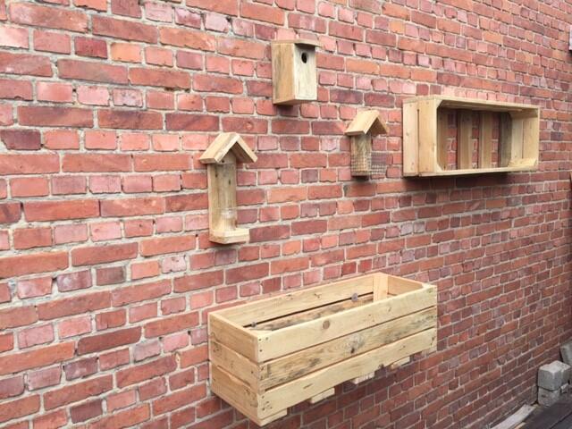 't Huizeken maakt ook mooie én nuttige creaties voor aan de muur: nestkastjes, voederhuisjes, bloembakken, … Alles wordt met de nodige zorg en finesse gemaakt uit recuperatiemateriaal.