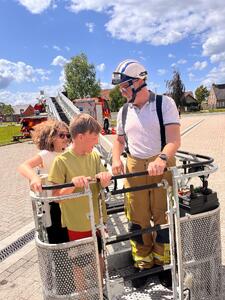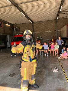 Bij vakantieopvang hoeven de kinderen en jongeren zich niet te vervelen hoor. Naast de klassieke spelletjes en creatieve momenten in de opvang zelf, staan er ook verschillende uitstappen op het programma. Zoals een bezoek aan de Brandweer bijvoorbeeld. Joepie! Wat een belevenis! Kobe kruipt eens in een echt brandweerpak. Alle kinderen en jongeren mogen meerijden met de brandweerwagen. Op een brandweerladder staan en met een echte brandweerslang spuiten is toch wel echt heel indrukkend. Sommigen durven zelfs de begeleiding nat spuiten. Kapoenen!
